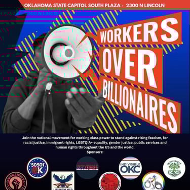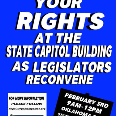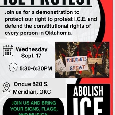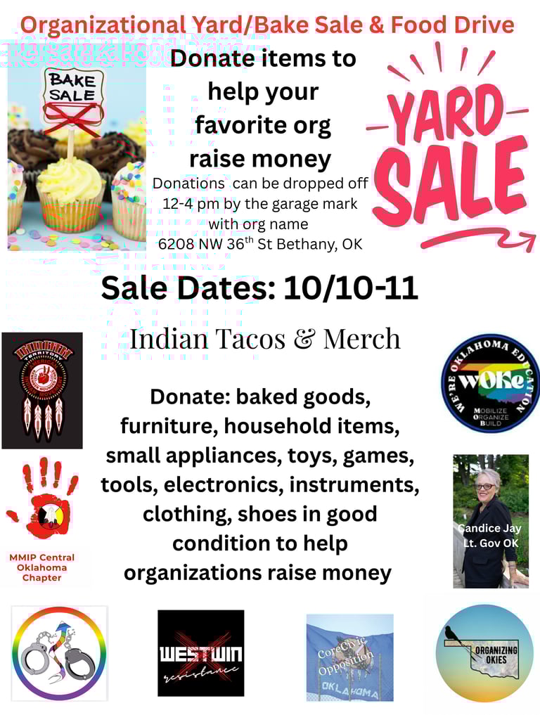 Organizations participating: OKC Mutual Aid, AIM-IT, MMIP COC, Westwin Resistance, CoreCivic OK Opposition, Organizing Okies, Candice Jay for Lt. Gov, and We're Oklahoma Education (wOKe)