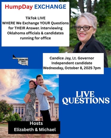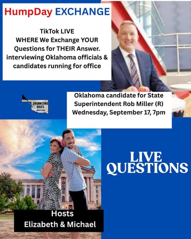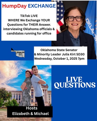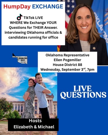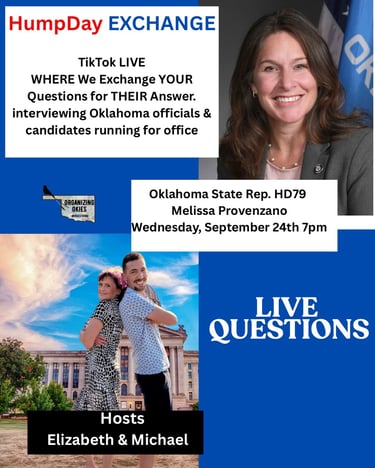 Where we exchange your questions for their answers! Every Wednesday evening 7pm join us on TikTok Live as we sit down with different elected officials and those seeking offices across Oklahoma. Get to know your representatives and those who want to be. Live Q & A