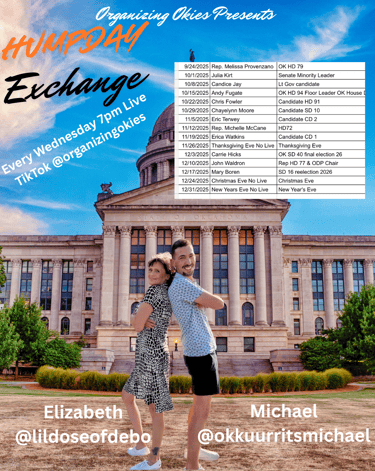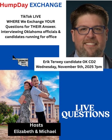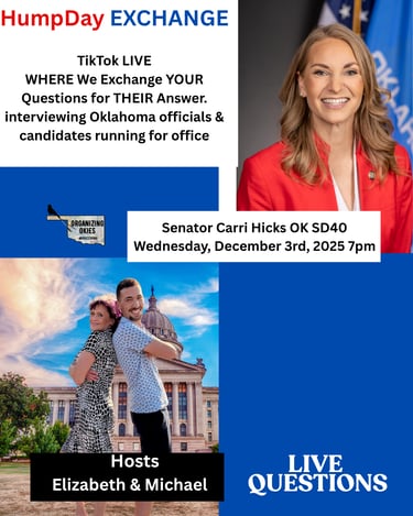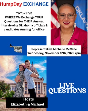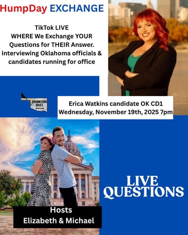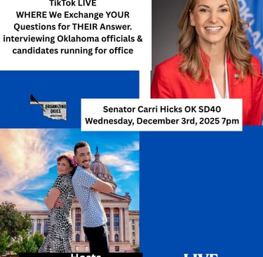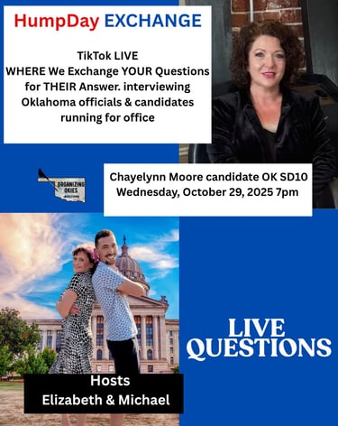 Where we exchange your questions for their answers! Every Wednesday evening 7pm join us on TikTok Live as we sit down with different elected officials and those seeking offices across Oklahoma. Get to know your representatives and those who want to be. Live Q & A